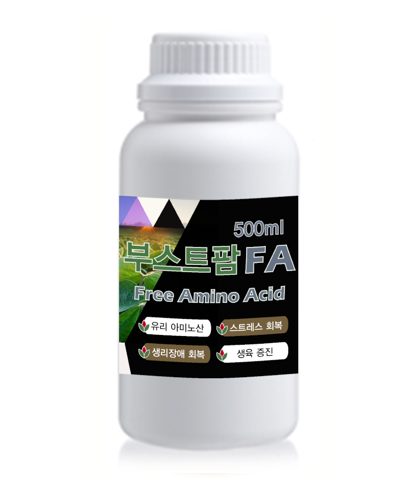 부스트팜 FA (Free Amino Acid) 유리아미노산 18종 외 부스트팜 FA (Free Amino Acid) 500 ml 페이지 정보 작성자 가이아바이오 댓글 0건 조회 39회 작성일 25-12-12 15:01 목록 답변 글쓰기 본문 생육촉진 및 스트레스 회복을 위한 미량요소복합비료 주요성분 . 식물성 아미노산18종, 천연옥신, 유기산, 킬레이트, 미량요소 등 적용작물 . 과수류, 과채류, 엽채류, 근채류 등 시비시기 . 개화기, 착과기, 생육기, 고온∙저온∙다습 스트레스 발생시 시비방법 . 관주 : 300~400평 관주. 엽면 : 400~600평 엽면시비. 개화기, 착과기 : 물 1말당 20~25ml 희석 살포. 생육기, 스트레스 : 물 1말당 30~40ml 희석 살포 기대효과 . 생장과 결실에 필요한 필수아미노산과 인산, 가리, 미량요소 등 공급. 흡수가 빠른 다양한 유리아미노산을 전생육기에 걸쳐 공급 효과. 저온 및 고온기 스트레스와 생리 장애에 회복이 빠름. 동물성 아미노산에 비해 작물 흡수가 빠름 제품설명 첨부파일 부스트팜FA유리아미노산500ml 스티커 Rev1.pdf (816.0K) 4회 다운로드 | DATE : 2025-12-12 21:58:09 이전글부스트팜 CA (Chelated Calcium) 25.12.12 다음글부스트팜 G (Growth) 25.11.13 회원로그인 회원가입 로그인 회사소개 인사말 연혁 인증 오시는길 제품소개 토양개선제제 미량요소복합비료 유기농업자재 병해충 예방제 악취분해∙제거제 미생물이야기 미생물이 하는일 기후대응 악취대응 영농사례 만감류 재배 키위 재배 고객센터 공지사항 고객의 소리 제품카타로그 Contact Us Tel.064-746-2552 평일 09:00 - 18:00 (주말/공휴일 휴무) 카카오톡 트위터 유투브 페이스북 인스타그램 회사소개 개인정보처리방침 상호명 :(유)가이아바이오 대표 : 하성해 주소 : 제주특별자치도 제주시 도두봉6길 21 E-mail : gaiabio@kakao.com 사업자등록번호 : 205-88-01728 Copyright © GaiaBio All rights reserved. Contact Us 064-746-2252 평일 09:00 - 18:00 www.youtube.com/@gaiabio 상단으로